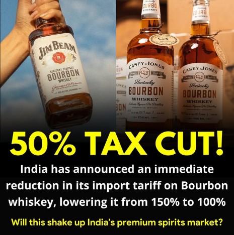 The tariff notification by the Indian government was dated February 13 but gathered media attention only on Friday (February 14, 2025). It said the basic customs duty on bourbon will be 50%, with an additional levy of 50%, bringing the total to 100