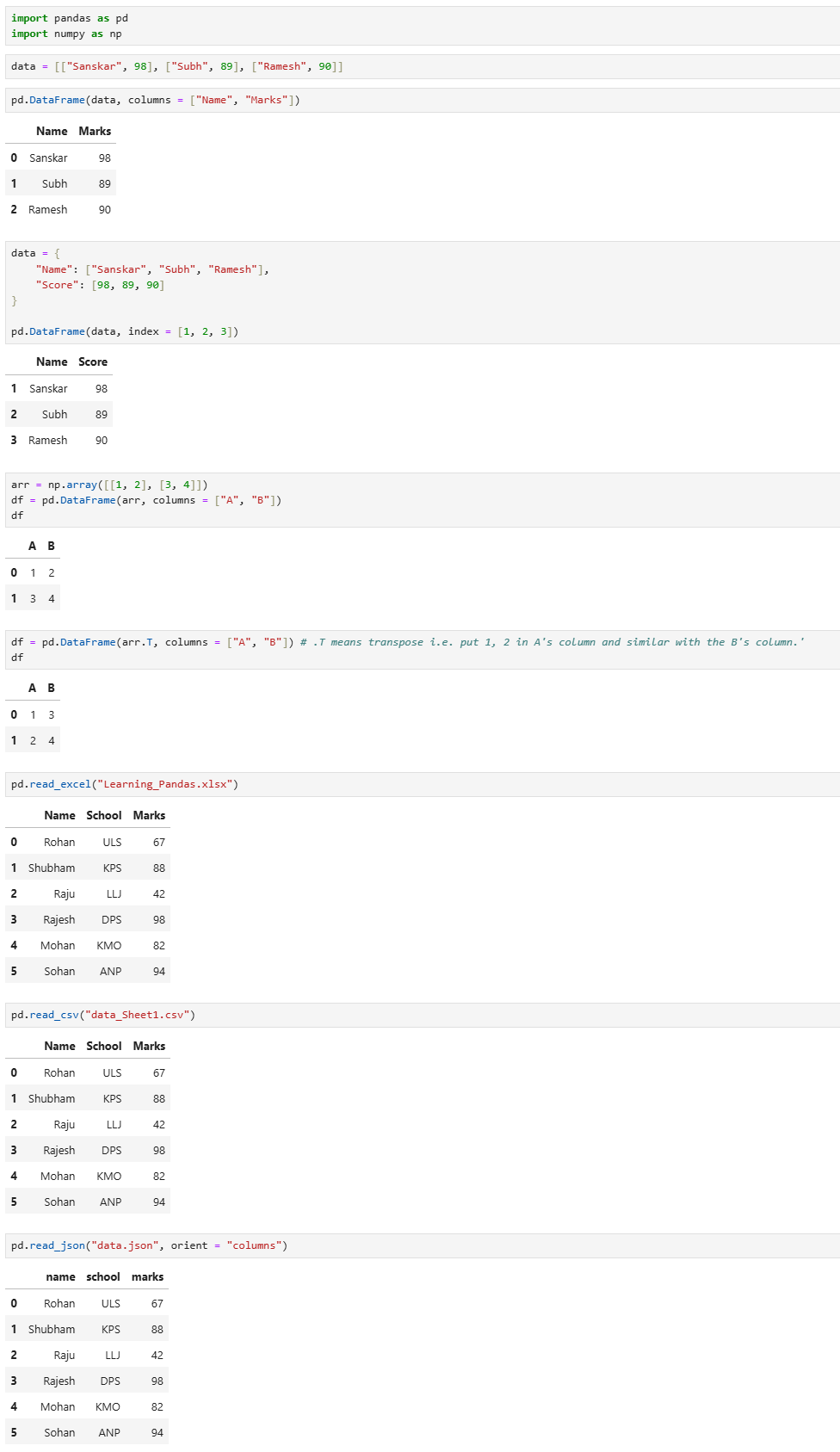 Day 11 of learning Data science as a beginner Topic: creating data structure In my previous post I discussed about the difference between panda's series and data frames we typically use data frames more often as compared to series There are a lot