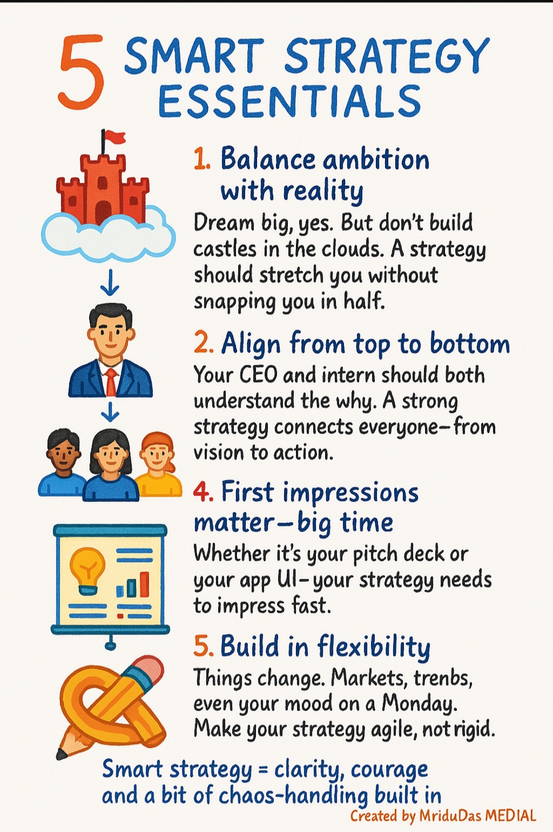 What makes a strategy truly successful? Not just buzzwords & vision boardsโreal results need real thought. Here are 5 smart & realistic elements you shouldnโt miss if you are building something big . 1. Balance ambition with reality Dream big, yes.