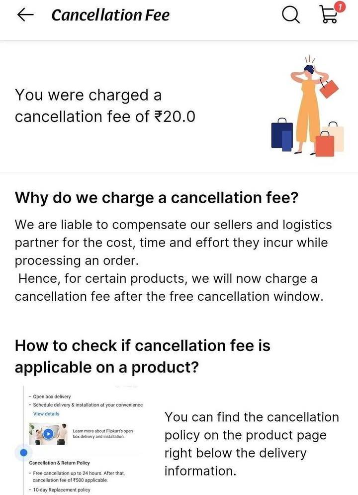 Flipkart may start charging Rs 20 fee on cancelling orders: report Screenshots shared on X indicate that Flipkart users who cancel their orders after a certain time will be charged a Rs 20 cancellation fee. It suggests that the platform will soon p