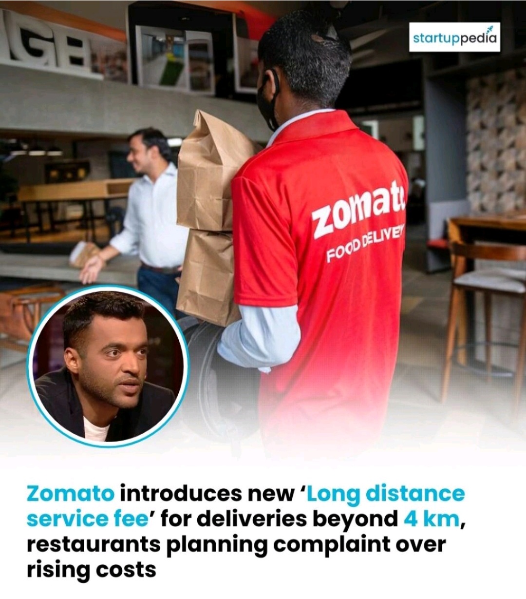 Deepinder Goyal’s Zomato has introduced a 'long distance service fee' for orders placed from restaurants located beyond 4 km, the Economic Times has reported. As per the new pricing structure, customers will be charged Rs 15 by the online food deli