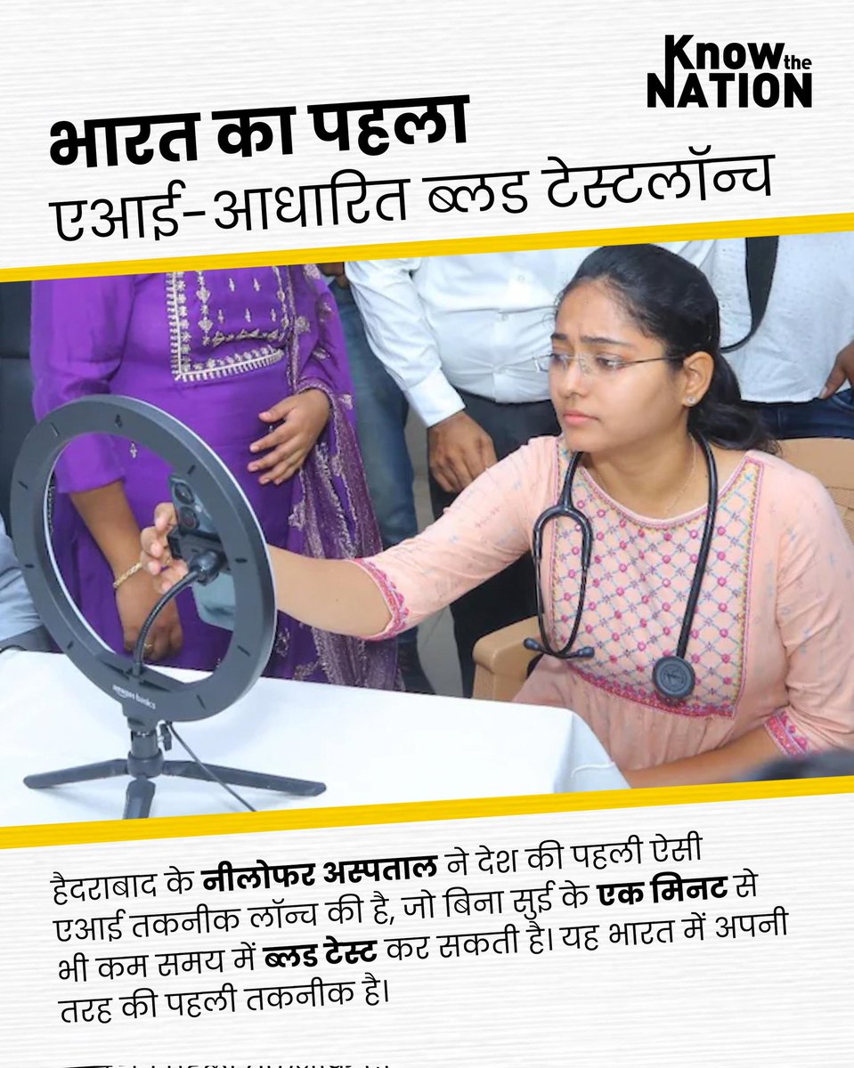 India's first AI-powered, needle-free blood test is here — launched at Niloufer Hospital, Hyderabad. Developed by Quick Vitals, it measures BP, heart rate, oxygen levels & more in just 60 seconds. No blood needed, just look at the camera!