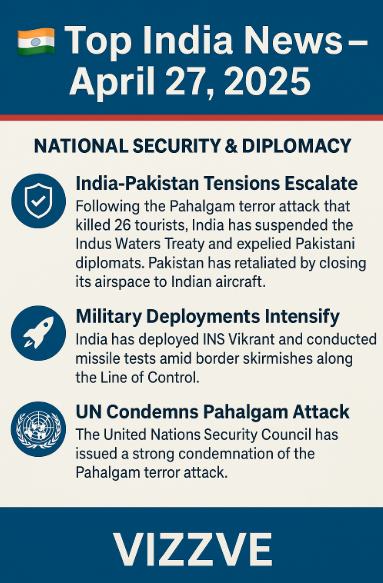*News Analysis* 1. *Breaking Down the India-Pakistan Tensions*: Analyze the recent escalation of tensions between India and Pakistan, including the Pahalgam terror attack and its aftermath. Discuss the implications of India's suspension of the Indus Waters Treaty and the expulsion of Pakistani diplomats. *Opinion Pieces* 1. *The Dangers of Escalating Tensions*: Write an opinion piece on the dangers of escalating tensions between India and Pakistan. Discuss the potential consequences of further conflict and the need for diplomatic efforts to resolve the issue. *Infographics and Visual Content* 1. *Timeline of India-Pakistan Tensions*: Create a timeline of the recent escalation of tensions between India and Pakistan, including key events and milestones. *Social Media Posts* 1. *Breaking News*: Share the image with a breaking news caption, highlighting the key developments in the India-Pakistan tensions.