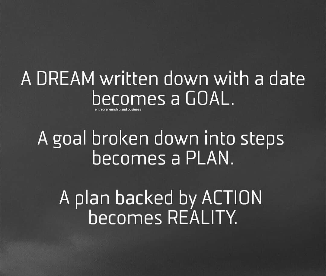 Some possible captions to accompany the image: - "Turn your dreams into reality! #motivation #goalsetting" - "A dream is just a dream until you take action. #entrepreneurship #success" - "Break down your goals into smaller steps and watch them become a reality! #productivity #planning" - "What's your dream? Write it down, make a plan, and take action! #inspiration #motivation"