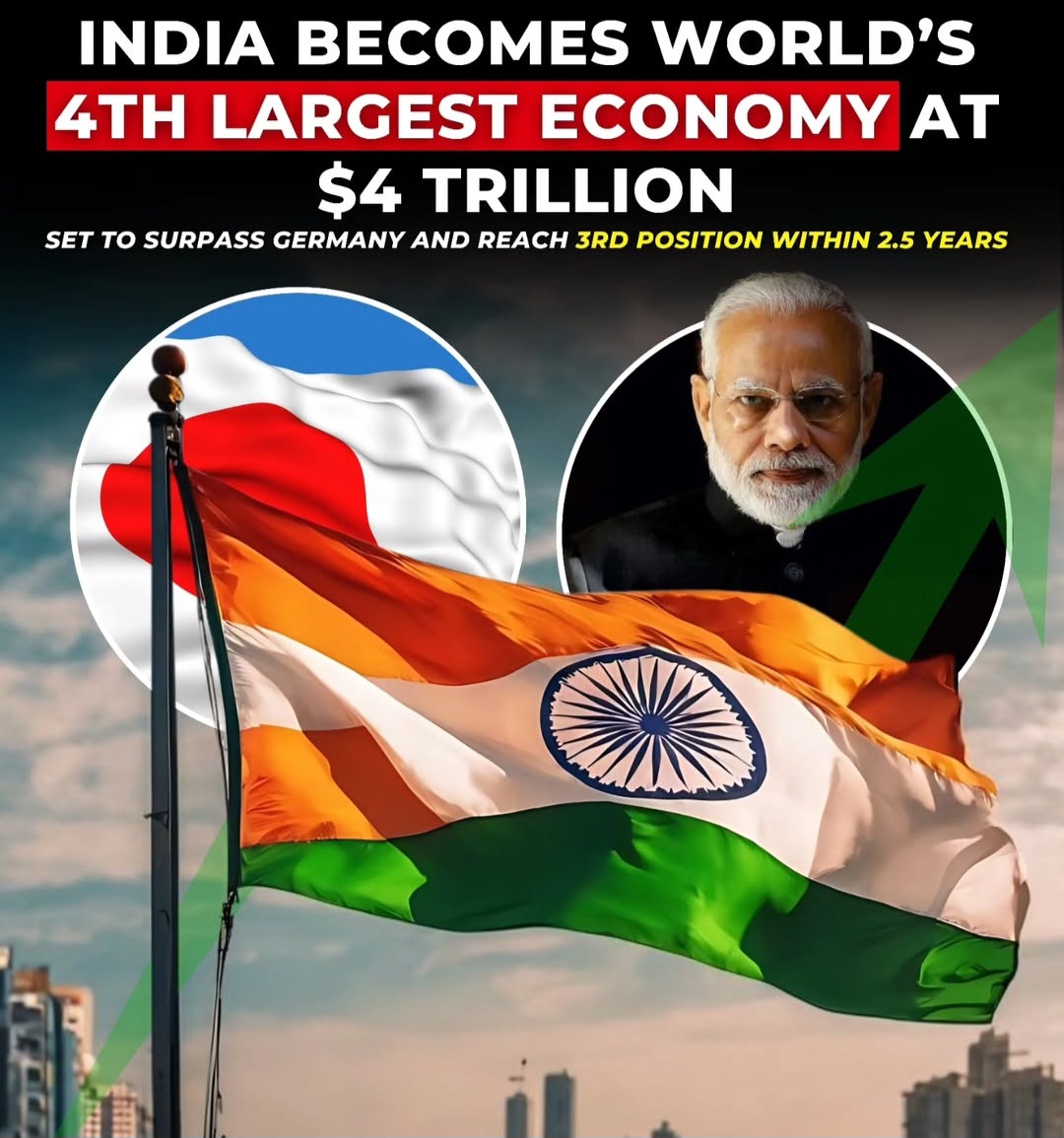 India has just become the world’s 4th largest economy, overtaking Japan. Our GDP is now reaching around $4.19 trillion according to the latest IMF data. This is a huge achievement, especially since India’s economy has doubled in the last decade "fr