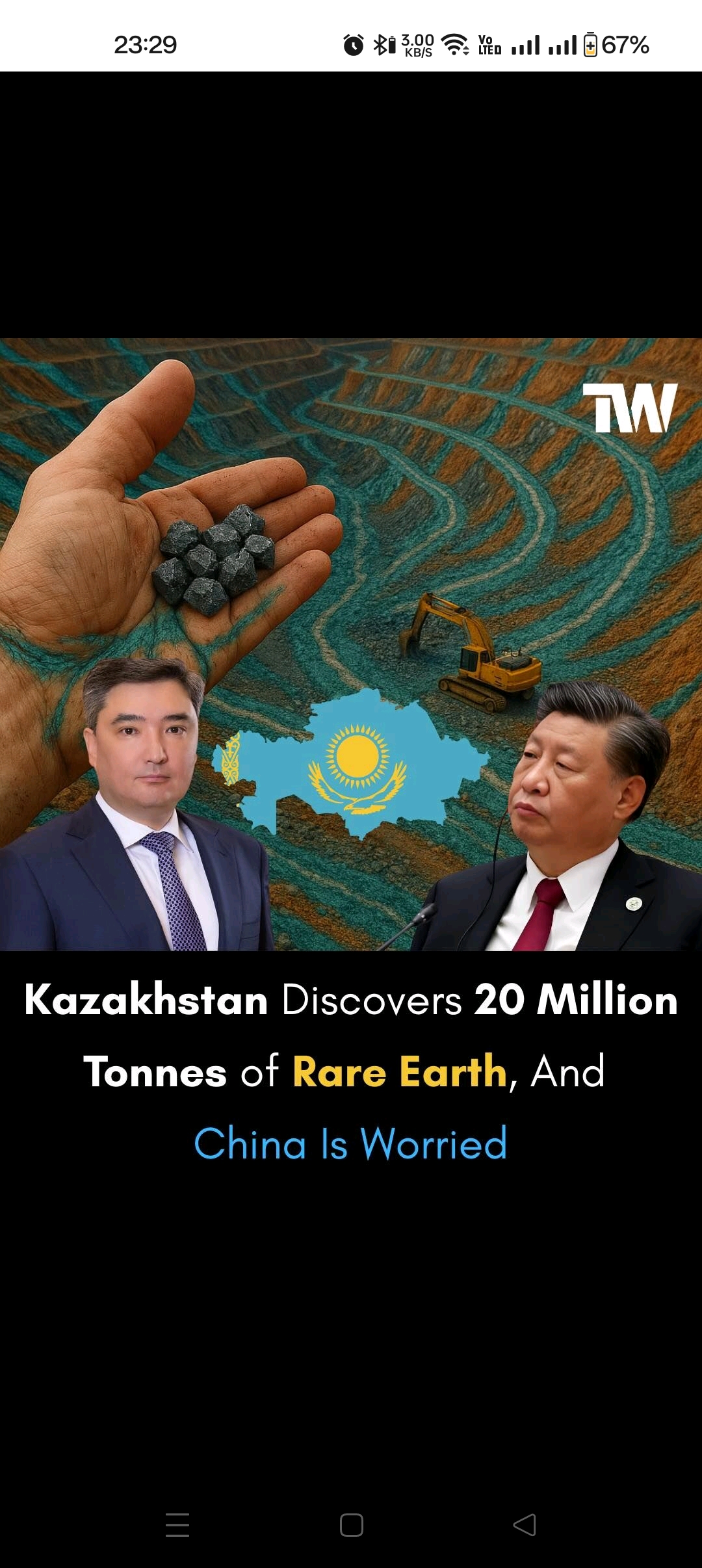 Kazakhstan recently discovered a massive 20 million tonnes of rare earth minerals-critical for EVs, smartphones, and green tech. This find could reshape the global supply chain, challenging China's long-held dominance. China, the world's top rare earth producer, is already showing signs of concern. As the world scrambles for cleaner energy and high-tech innovation, Kazakhstan's new found treasure might just tip the balance.