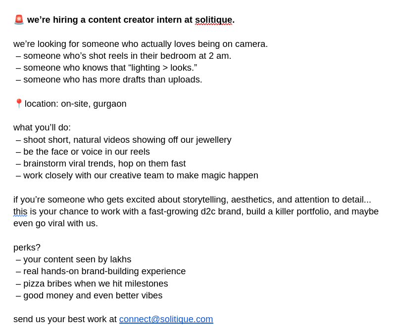 🚀 We’re Hiring at Surokki! 🚀 We’re looking for a Social Media Marketing Intern who can: 🎨 Create engaging social media posts 🎥 Develop reel ideas & scripts 📲 Handle social media accounts 📊 Explore Meta ads & growth opportunities At Surokki, w