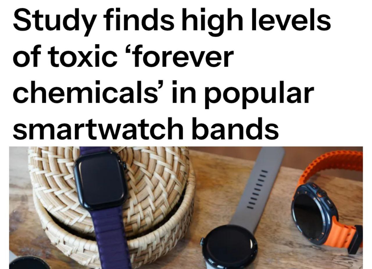 🦠 Your Smartwatch Band Is Toxic ⌚ A new study has found harmful “forever chemicals” in popular smartwatch bands. These toxins, called PFAS, can seep into your skin, especially during workouts when sweat and open pores make absorption easier. 👨🔬