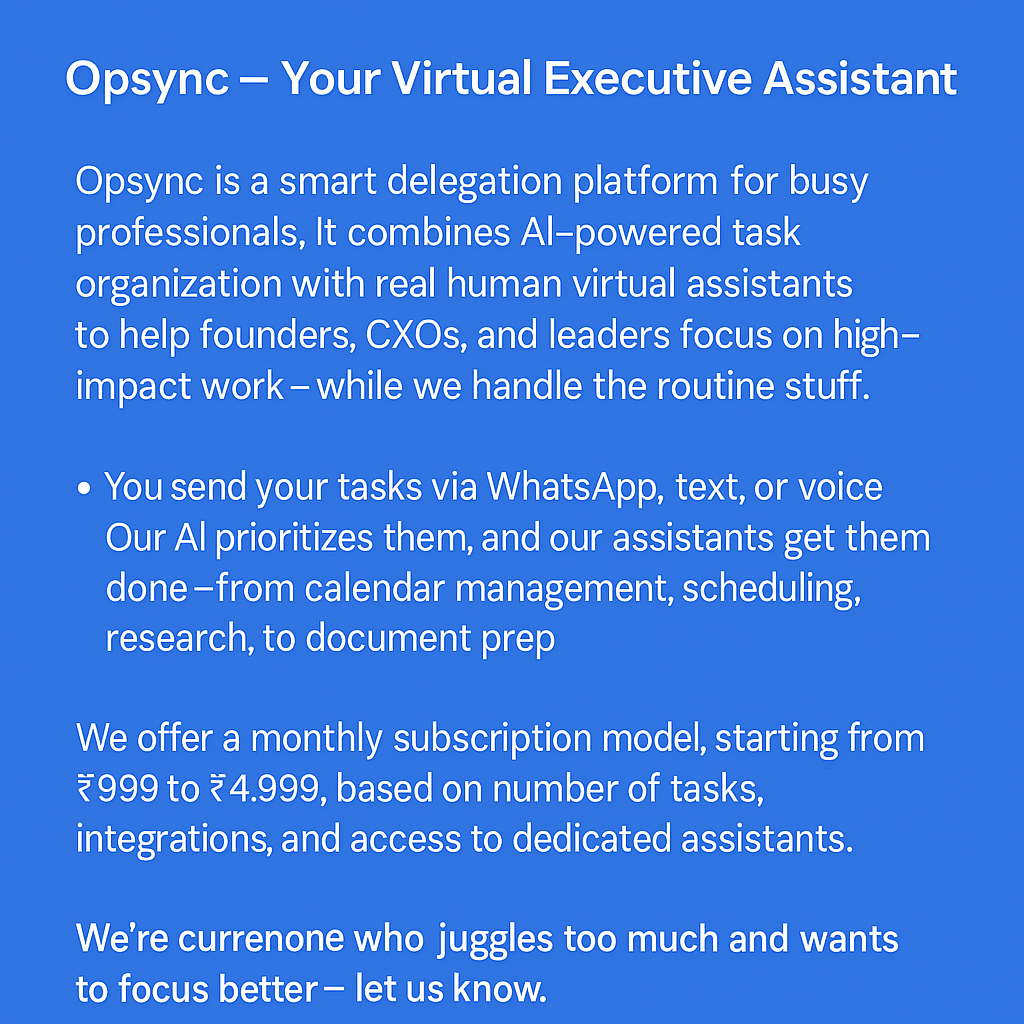 What you think will this idea works? mostly executive role individuals will have not have time to do their tasks here can help them to solve their problems.