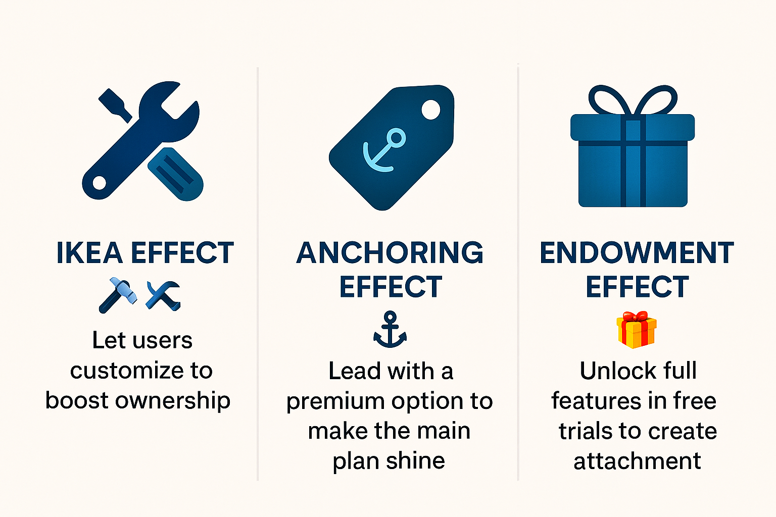 Hey Medial fam—ever wondered why we overvalue our own creations or get stuck on that first price we see? 1. 🛠️ IKEA Effect We overvalue things we’ve had a hand in building. When you assemble your own furniture, you feel proud—and you’re willing to pay more for it (even if it wobbles). You spend an afternoon putting together a bookshelf from IKEA—and suddenly it’s *priceless* in your eyes. 2. 🎁 Endowment Effect Simply owning something makes us think it’s worth more. Your old coffee mug? You’d be devastated to lose it—even though you’d never buy it again if you saw it in a store. You list a second-hand gadget for ₹500—but when someone offers you ₹400, you think, “No way—I won’t sell!” 3. ⚓ Anchoring Effect Our first piece of information “anchors” our judgment. That first price tag sticks in our mind, and everything else feels cheap or expensive relative to it. A ₹10K smartwatch seems reasonable if you first see a ₹20K model—even if it’s still more than you’d usually spend.