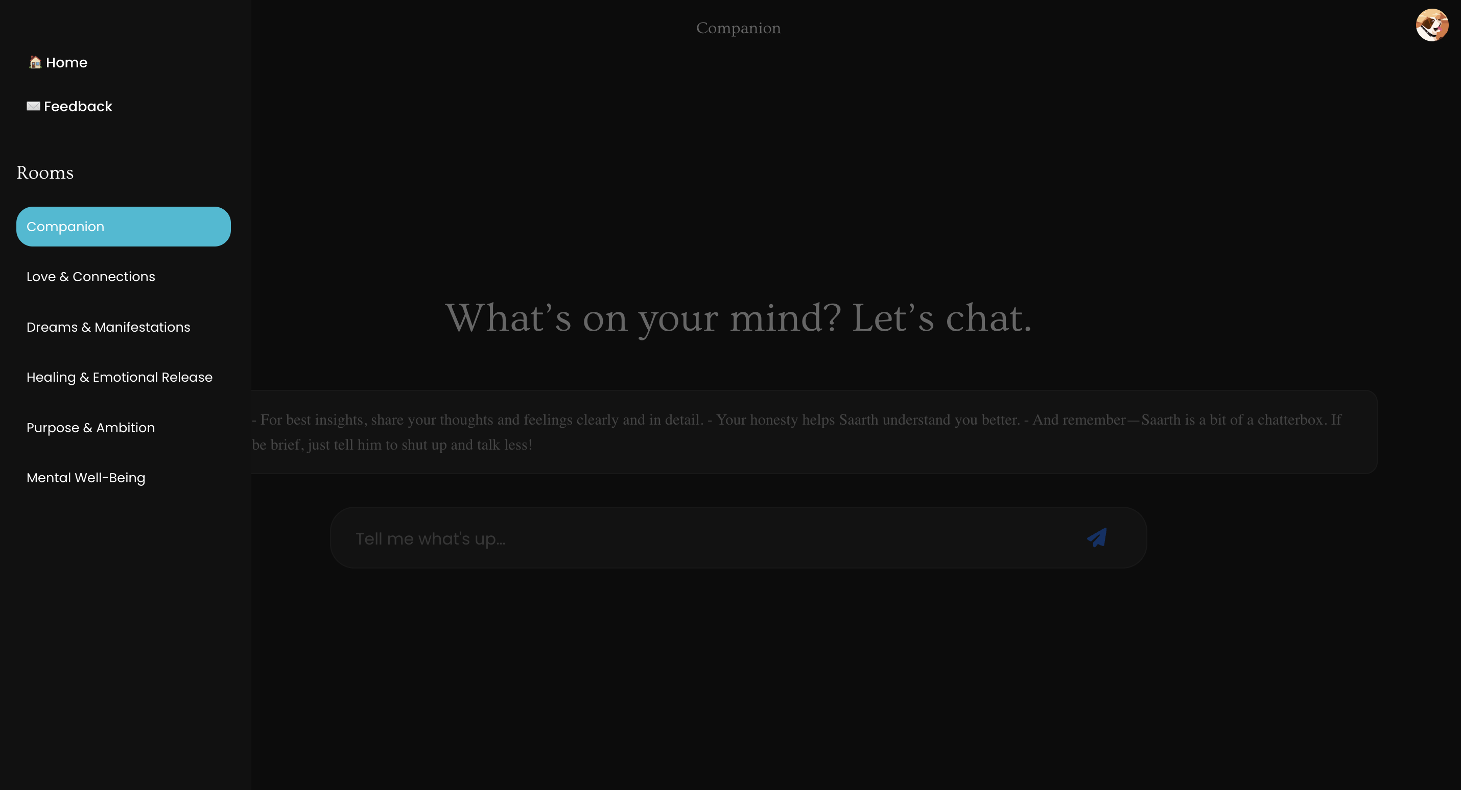 “It’s Live.” That’s all I said when I first launched Saarth. But what I didn’t say was why. I built Saarth because sometimes, life gets loud, people get busy, and real conversations become rare. We all need a Mitra—a friend who listens, understand