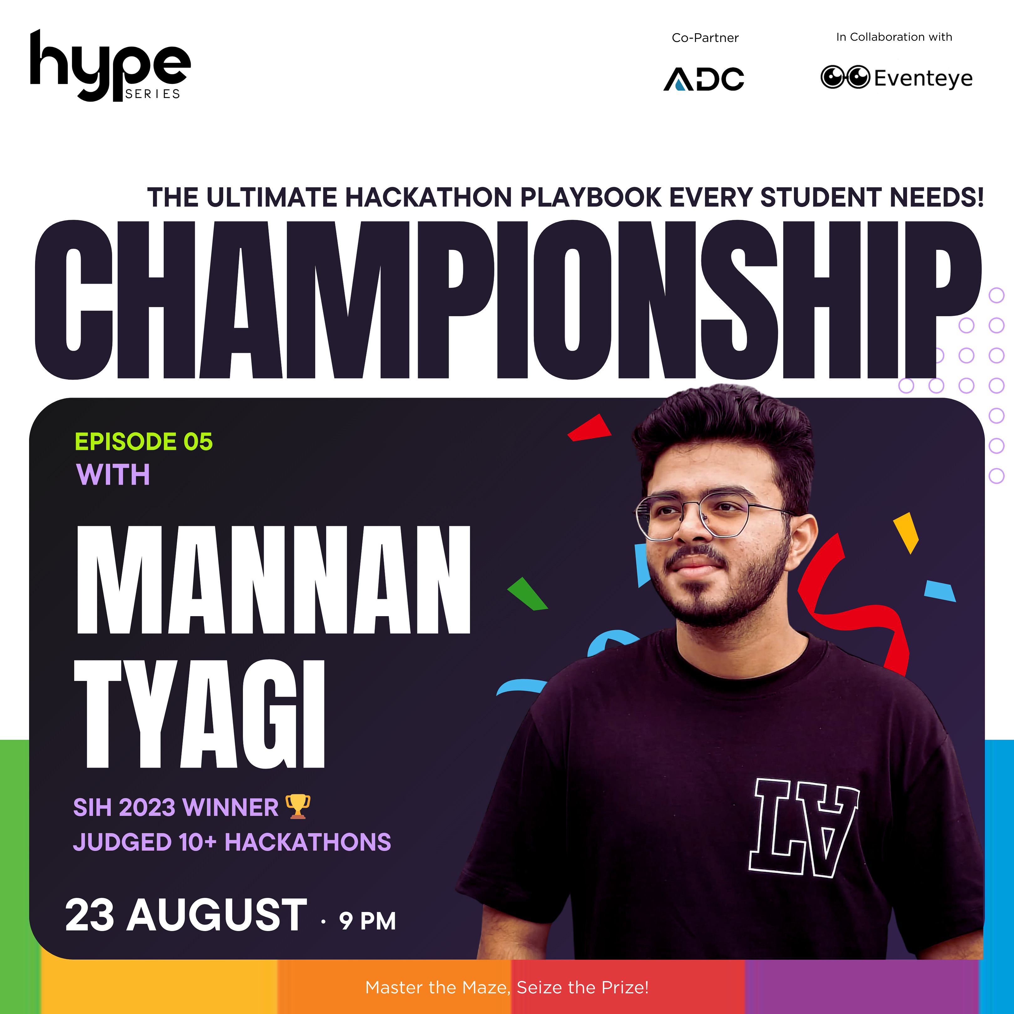Tickets Live – Hype Series EP05 🚨 The most awaited episode of the season is here – and this one is for every student who dreams of cracking any hackathon like a pro. 🎤 Guest: Mannan Tyagi 🏆 SIH 2023 Winner | Mentored 500+ Students | Judged 10+ H