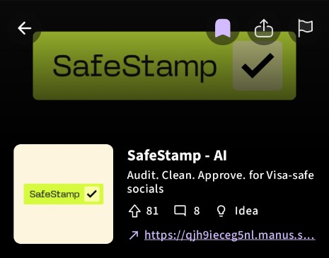 Very basic mvp is done for SafeStamp ai, refining it , would take time and thanks for your amazing support , want to launch safestamp soon ,but not rushing with incomplete product ...so stay patient , if your friends or relatives are in plan to app