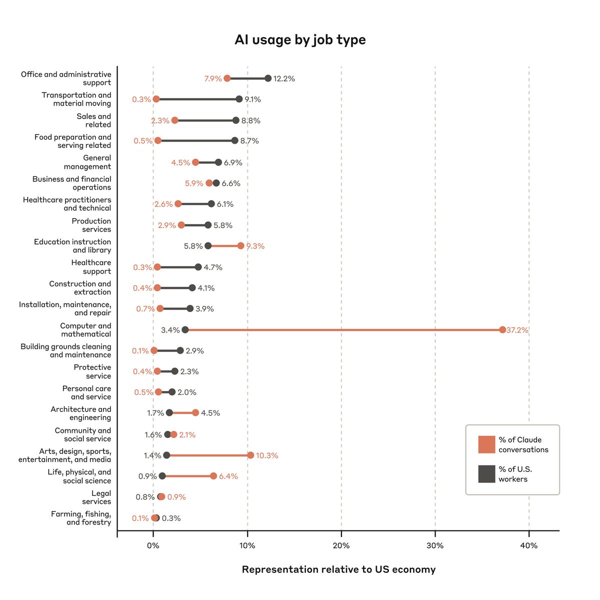When orange line crosses above grey, you're being replaced by AI. When grey stays ahead, you still have a shot, if you start using AI, you’ll leave your peers behind.