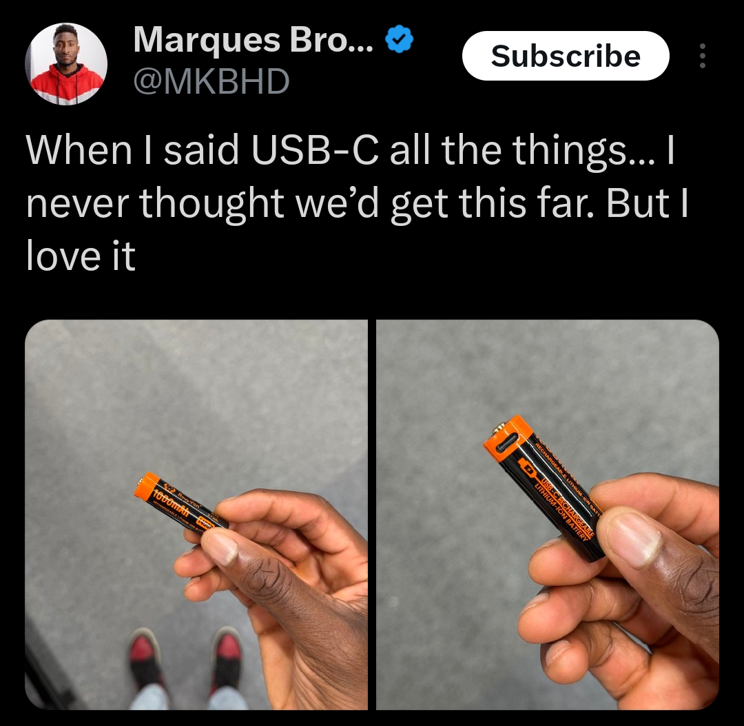 USB - C rechargeable battery might launch soon. A good innovation - good for environment too.