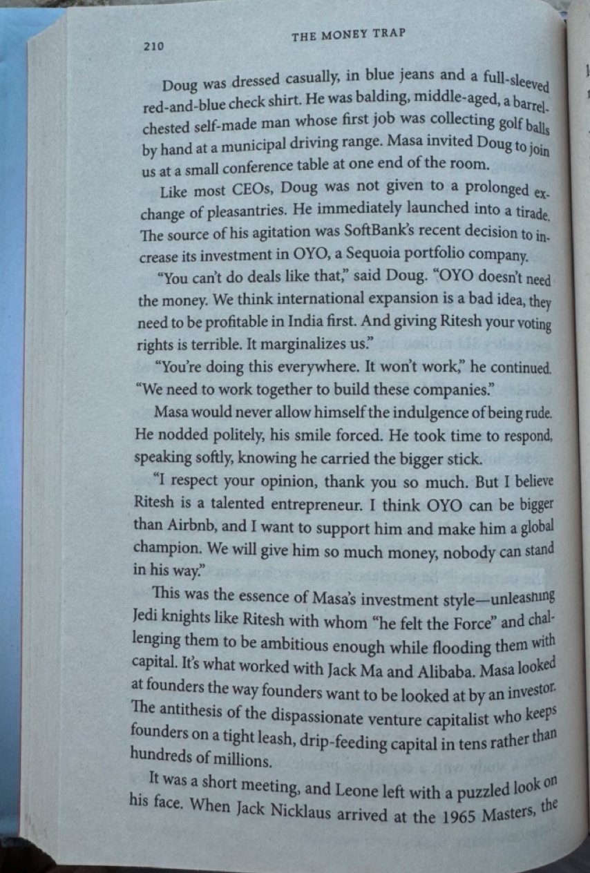 Sajith Pai recently posted TIL that Doug Leone was v unhappy w Masa for 'overfunding' Oyo, and giving their voting rights to Ritesh Agarwal. The culture clash is real: Doug Leone: "Oyo doesn't need the money" Masa: "We will give him so much mon