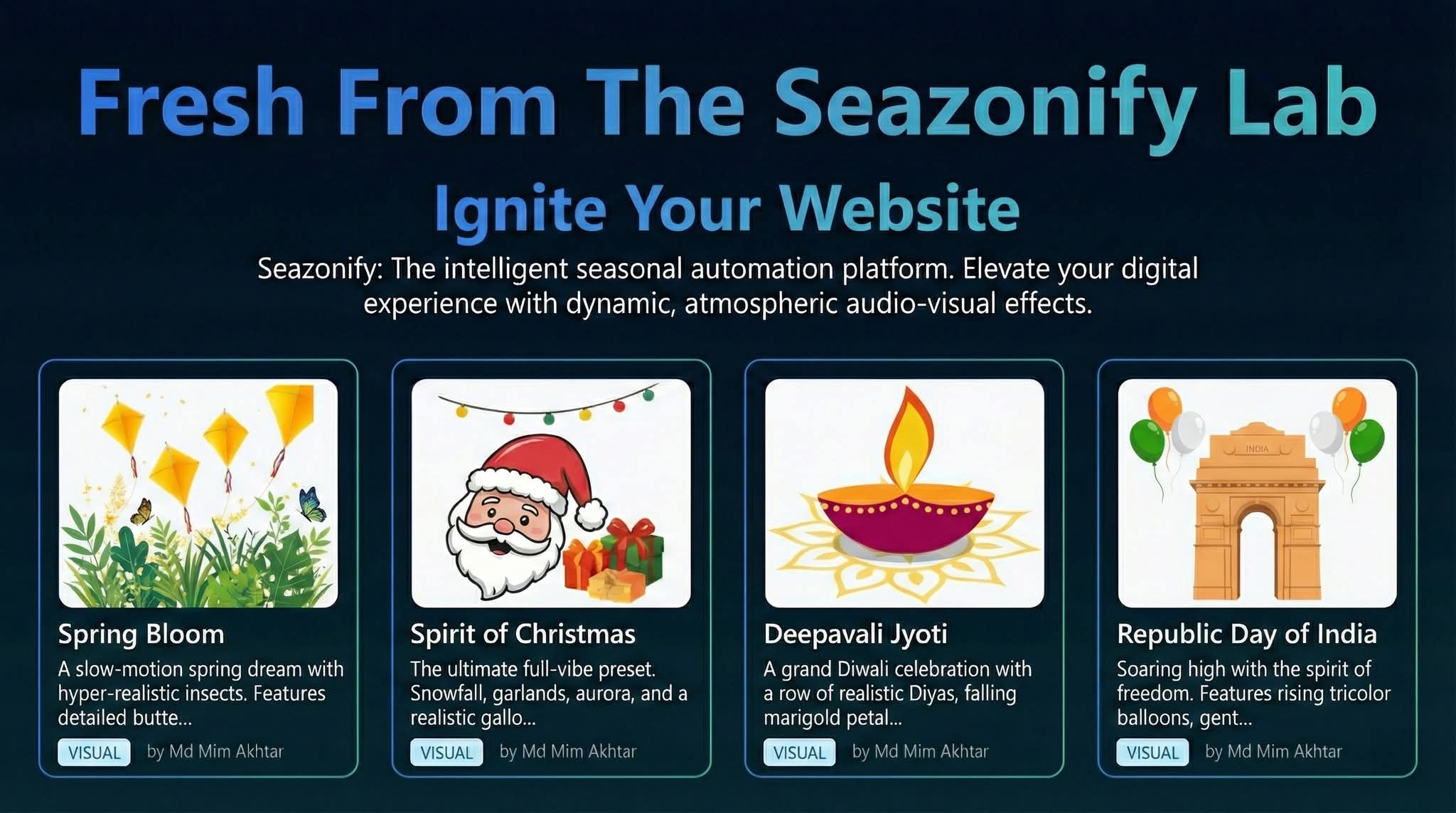 Shipped 6+ visual effects on Seazonify ✨ These effects are lightweight, non-intrusive, and performance-first. Explore them at https://app.seazonify.com/workspace I’ve been building Seazonify quietly for a while. Starting today, I’ll be sharing Sea