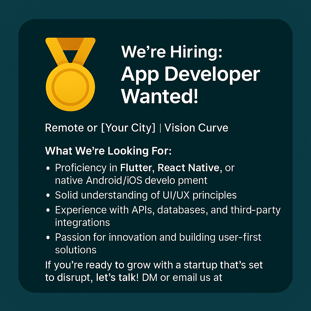 I need a app 🧠 We're Hiring: App Developer Wanted! 🚀 📍 Remote or [Gandhidham] | 💼 Vision Curve Are you passionate about building intuitive and scalable mobile apps? We're looking for a skilled App Developer who understands both the art and scien