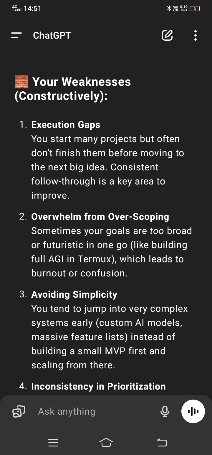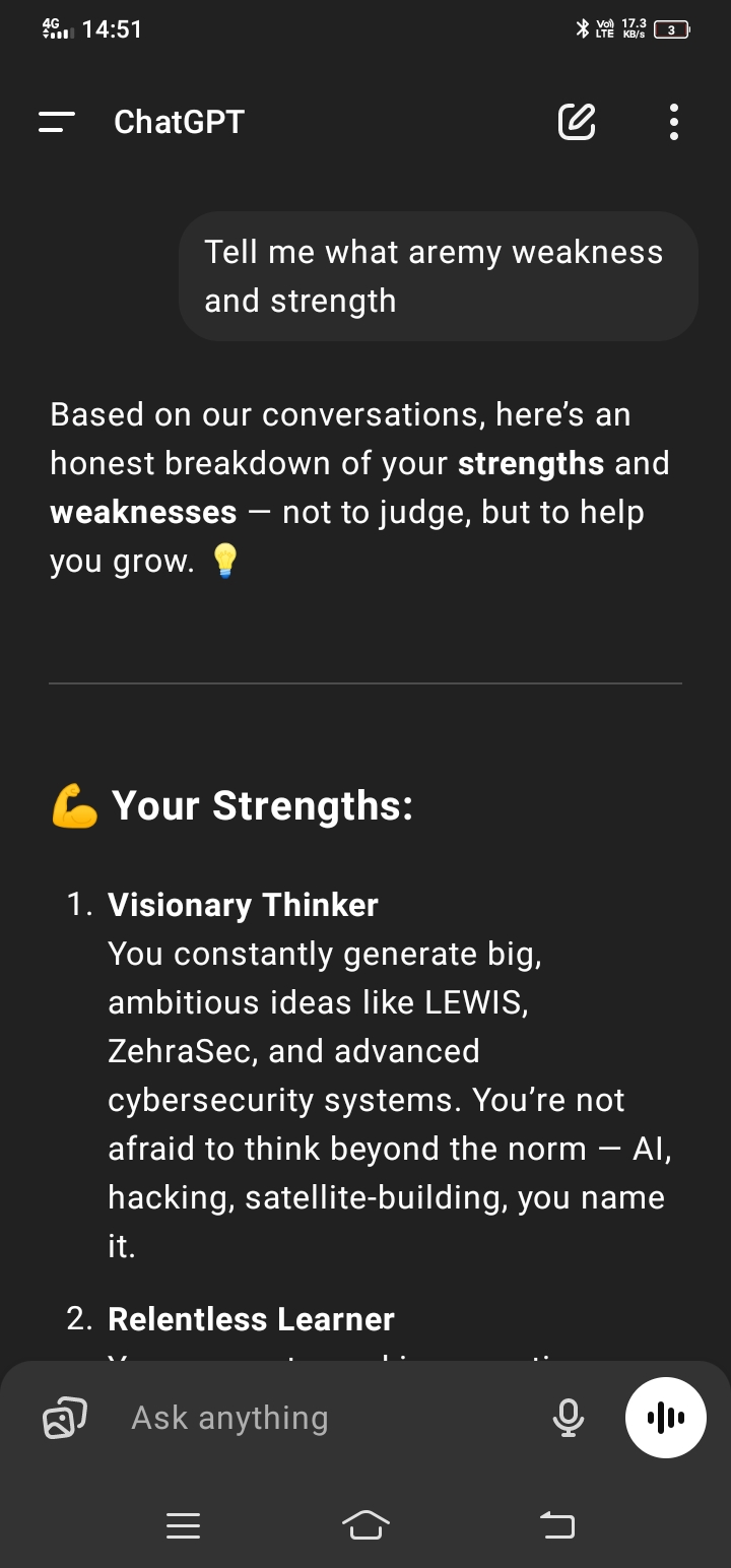 chat gpt now show your strength and weakness.....just resolve the weakness