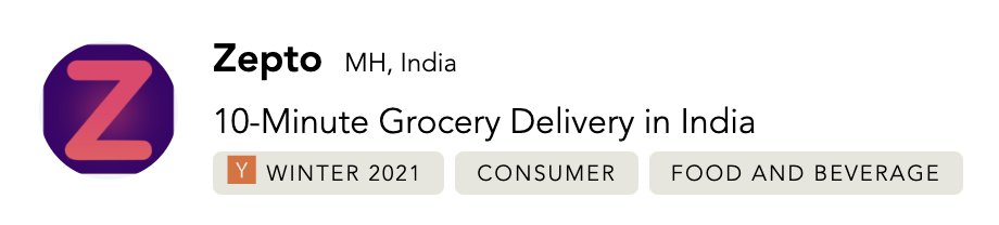 10 indian companies that you might not know were yc companies: 1. groww (W18) 2. meesho (S16) 3. razorpay (W15) 4. zepto (W21) 5. orange health labs (S20) 6. khatabook (S18) 7. cashfree payments (S17) 8. lokal (S19) 9. okcredit (S18) 10. innov8 (S16)