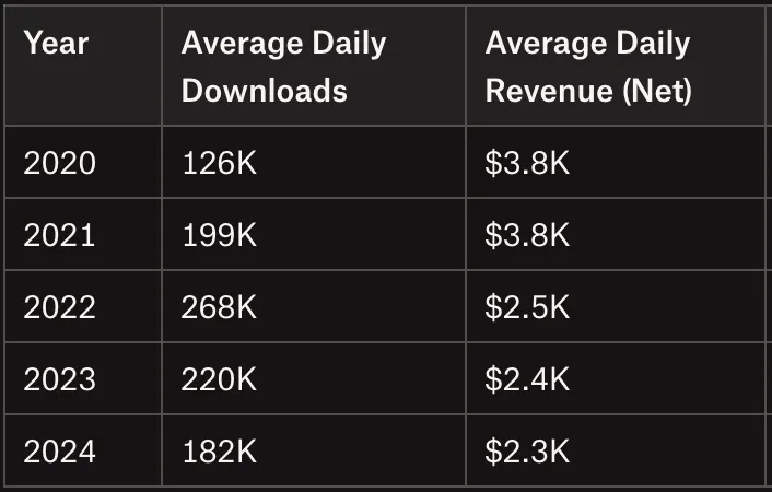 Ludo King has crossed 1B+ downloads, one of the highest ever for an Indian app. Yet its revenue per daily active user is < $0.01. 70% of downloads are from India, and most revenue likely comes from ads, not in-app purchases. Shows how hard it is t