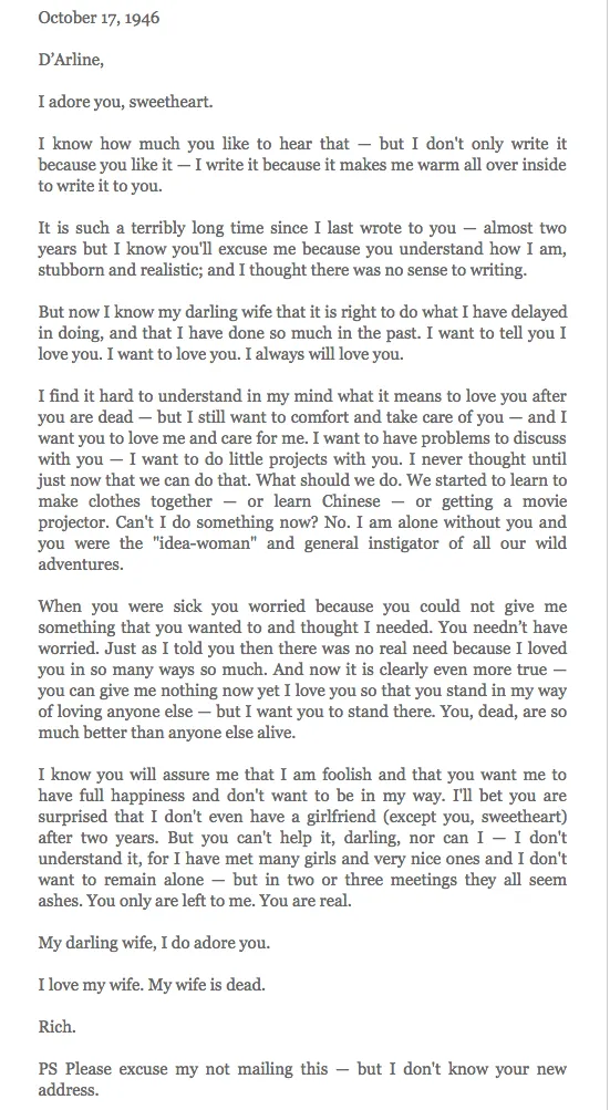 This is the letter Feynman wrote to his dead wife. As a Feynman fanboy, it truly hurts to the core😔