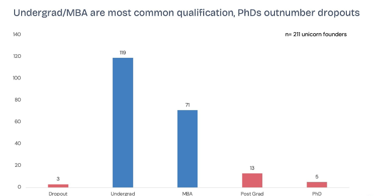 College dropouts like Bill Gates and Mark Zuckerberg might dominate Silicon Valley folklore, but India tells a different story: Only 3 out of 211 Indian unicorn founders abandoned their degrees early. You're actually far more likely to find advanced