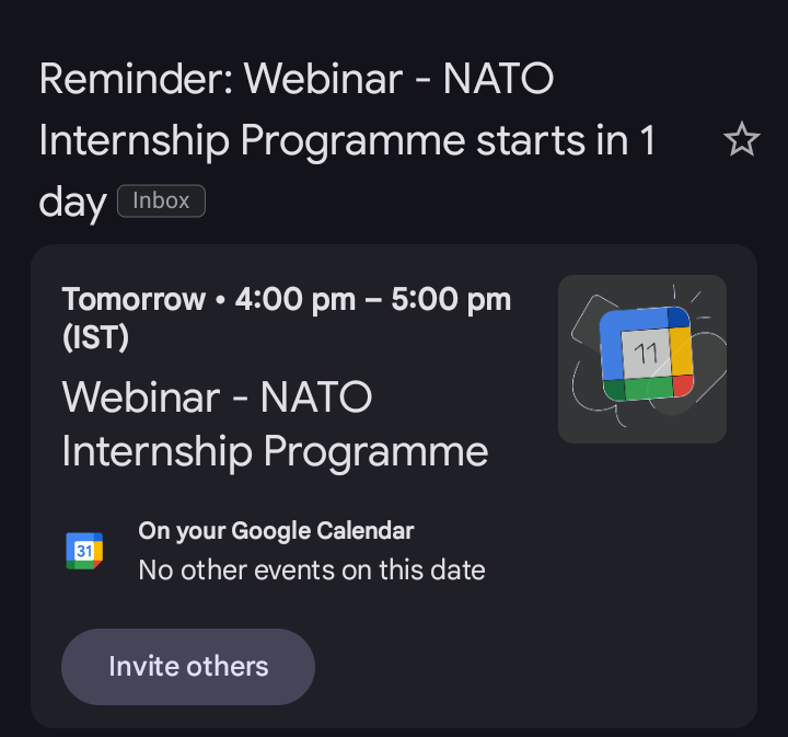 Got a chance doing internship in NATO (NORTH ATLANTIC TREATY ORGANISATION) DURING MY SEM 😅