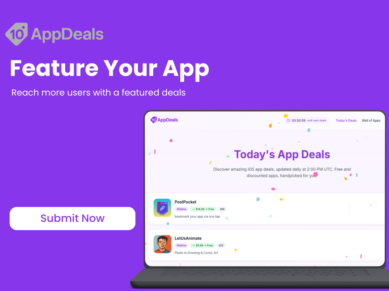 Been building something small but (hopefully) helpful for indie app developers. When I tried launching my first app, I realized how hard it was to get noticed without a big budget. Listing platforms felt overwhelming — hundreds of apps, barely any visibility. So I thought… what if we flipped that? 📱 Only 10 app deals a day — that’s it. Focused visibility for developers. Better discovery for users. Win-win. Would love your thoughts: ➡️ As a user, do you browse app deals? ➡️ As a dev, would you find this useful? Always open to feedback or ideas — this is just the beginning.