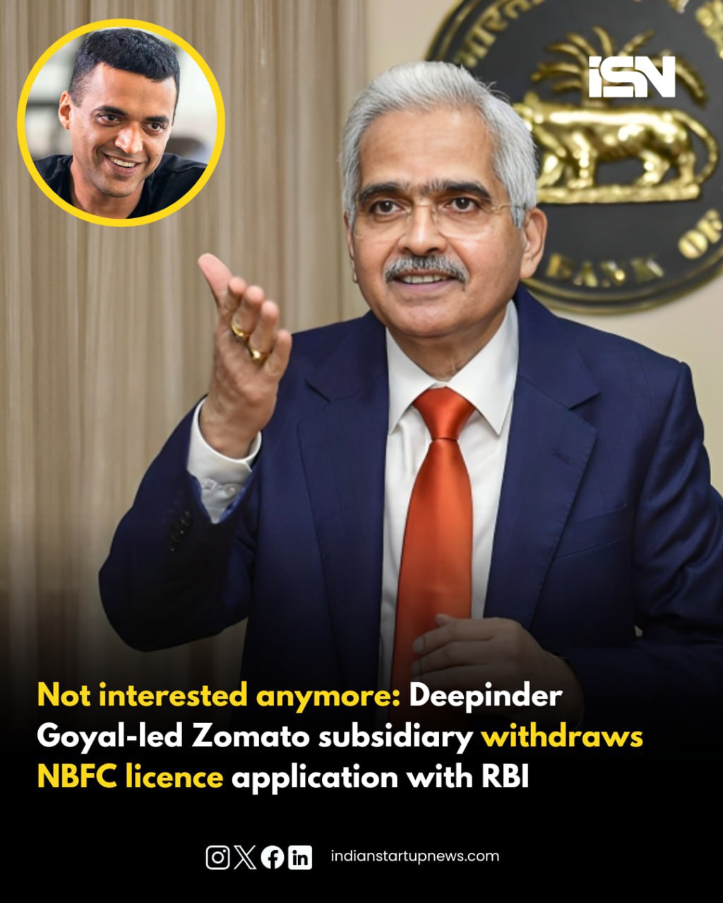 Deepinder Goyal-led food delivery giant Zomato has abandoned plans to enter the non-banking financial company (NBFC) sector. The company's subsidiary, Zomato Financial Services Limited (ZFSL), has decided to voluntarily withdraw its application to