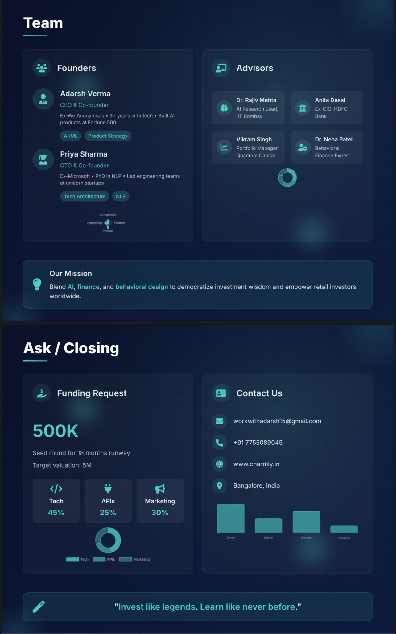 We have successfully tested our beta version of Charmly AI, and the results are very encouraging. The platform is built to combine timeless investment wisdom with today’s live market data, helping users make smarter financial decisions. This is an i