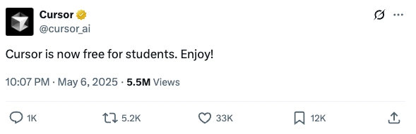 If you're a student and haven’t tried Cursor yet, now’s the time. Cursor just made their AI coding editor completely free for students. It’s like VS Code with an AI pair programmer built in and it actually understands your codebase (better than Copil