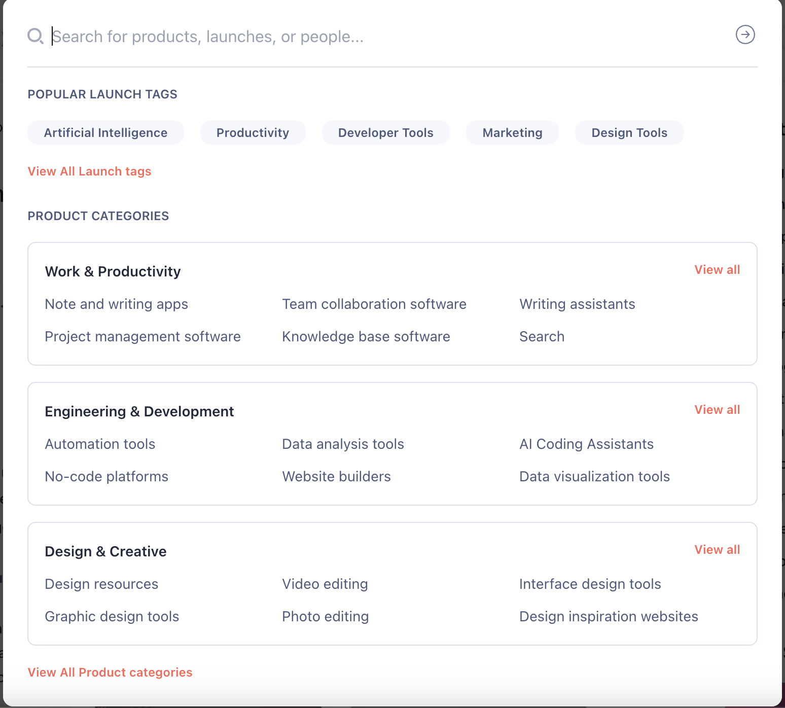 Waiting for the day Product Hunt enables NLP search Imagine asking "find me a product that performs xyz usecase" instead of having to search basis category