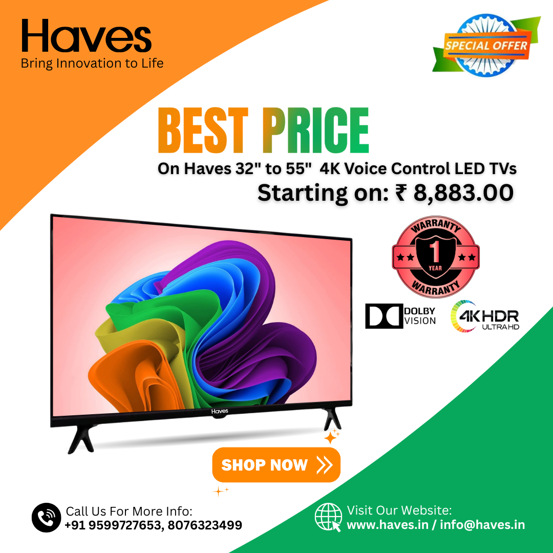 Your search for the perfect TV ends here! 🖥️💥 Get the best price on Haves Smart TV and enjoy your favorite shows like never before. Don’t miss out—shop now! https://haves.in/product-category/smart-led-tv/ #BestPrice #SmartHome #TVDeals #SmartTV #H