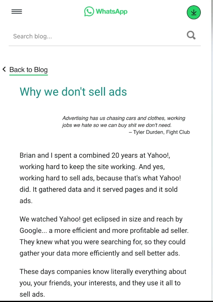 WhatsApp is getting ads that will appear in the “updates” tab. Investors are happy but WhatsApp’s blog post from 2012 entitled “Why we don’t sell ads” is still live 😂
