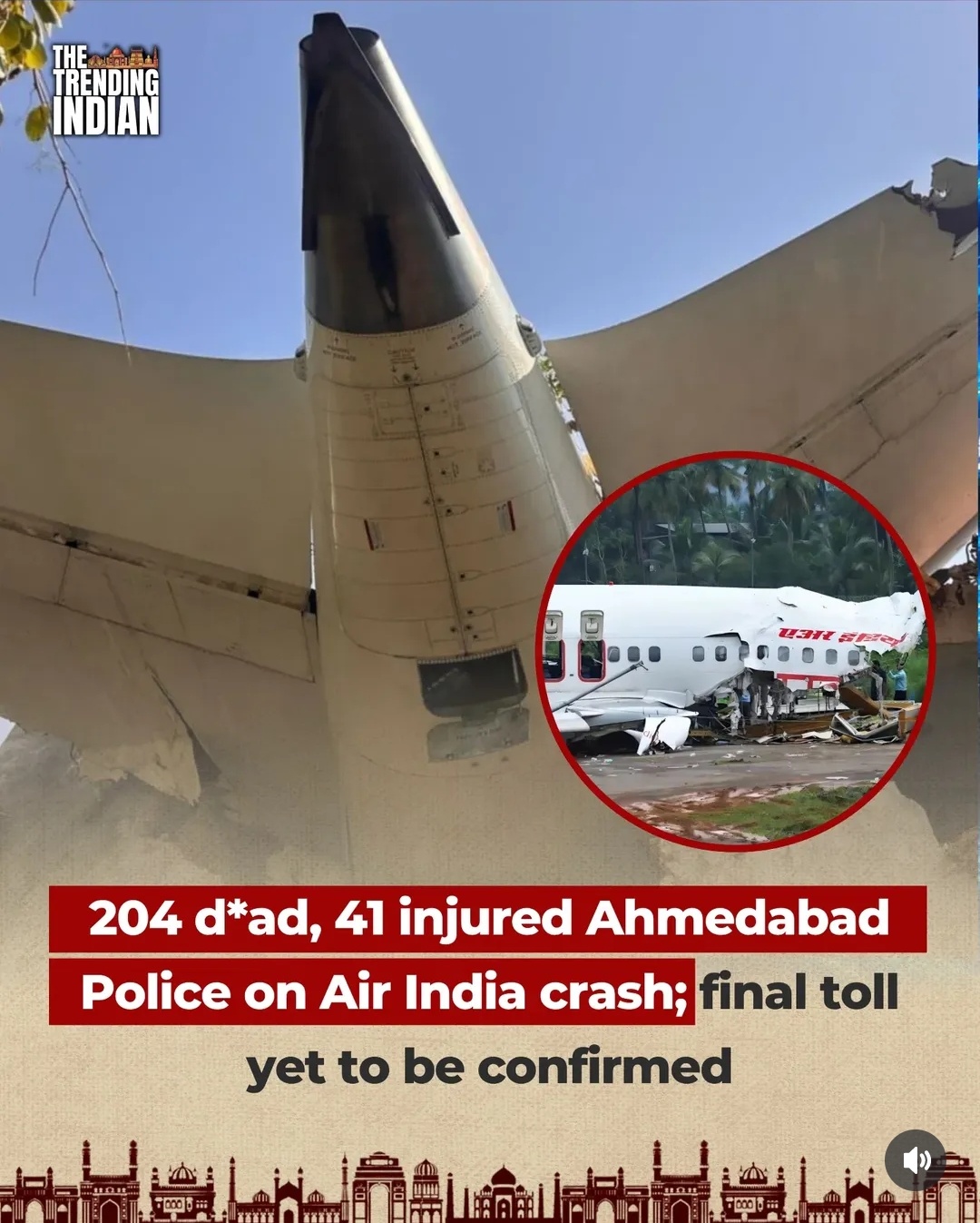 A tragic Air India crash in Ahmedabad has claimed at least 204 lives, with 41 injred, according to the Police Commissioner. The London-bound Boeing 787 struck a building near B.J. Medical College shortly after takeoff. Rescue operations are ongoing