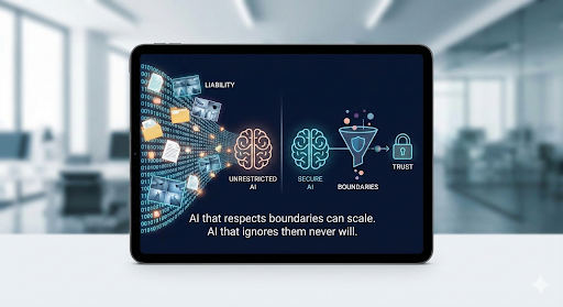 Why AI Should Never See What It Doesnโt Need? Most AI systems fail not because theyโre unintelligent, but because they see too much. In regulated, real-world environments, visibility is a liability. If an AI needs full screens, raw data, or unres
