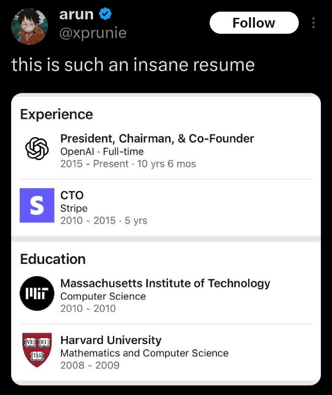We're Obsessed with "Sam's 10 Tips," But We're Ignoring His Real Secret. ๐ง ๐ก A thought for the Indian startup ecosystem. I see Medial and other platforms flooded with: "Sam Altman said this..." "Naval's 5 rules for..." "Elon's productivity hack..." We worship the output - the tips, the quotes, the success. But we conveniently ignore the FOUNDATION. We want the "hack" without the "hard work." Take a look at the resume of someone like Greg Brockman (Co-Founder & President of OpenAI). Itโs not just "10 tips to build an AI company." It's years at Harvard and MIT. ๐ It's a foundational understanding of mathematics and computer science. It's the grueling experience of being the CTO at Stripe. The hard-hitting truth for new-age founders is this: ๐๏ธ Education is the Bedrock: World-class education (formal or self-taught with insane discipline) provides the first principles and mental models you can't get from a Twitter thread or Medial viral post. ๐ช Deep Skills are the Real Moat: The "labour" of becoming an expert in your field is what gives you the right to have an opinion that matters. It's your real competitive advantage. ๐ Personal Branding is the Roof, Not the Foundation: Your brand is built on WHAT YOU KNOW and WHAT YOU CAN DO. Without a solid foundation of knowledge and skill, personal branding is just an empty house. Let's stop being obsessed with the highlight reel and start respecting the years of invisible, grueling work that made the success possible. The real secret isn't a "hack." It's the deep, often lonely, work of becoming exceptional at something. What are your thoughts? Are we focusing too much on the "gurus" and not enough on the process/foundation? ๐
