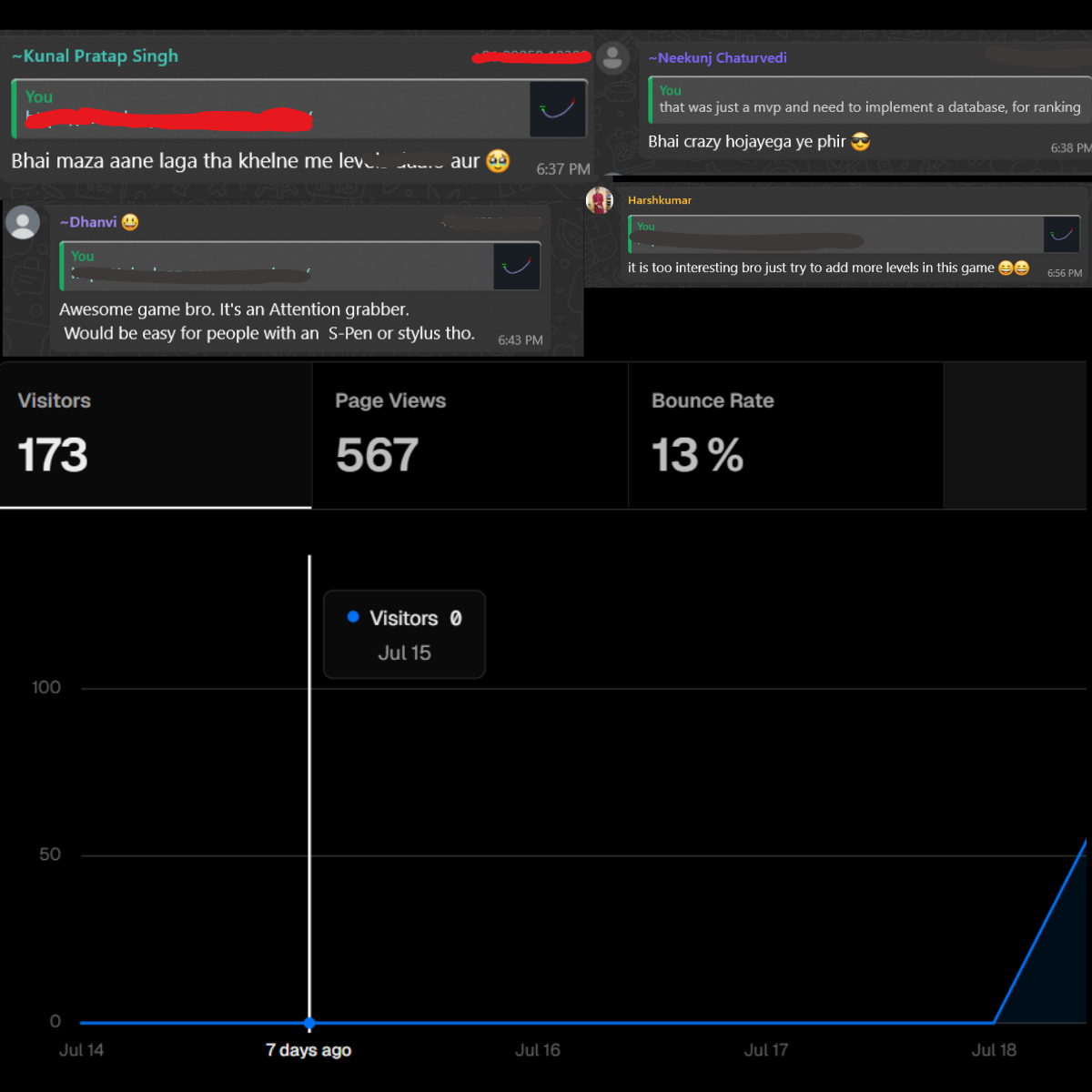 I just made this Useful game which got 100 visitors in 10 min. It was just a nostalgic feeling which made me build this game, you know when I was young me and my dad used to go Exhibition's often and we used to get all excited to play all the games