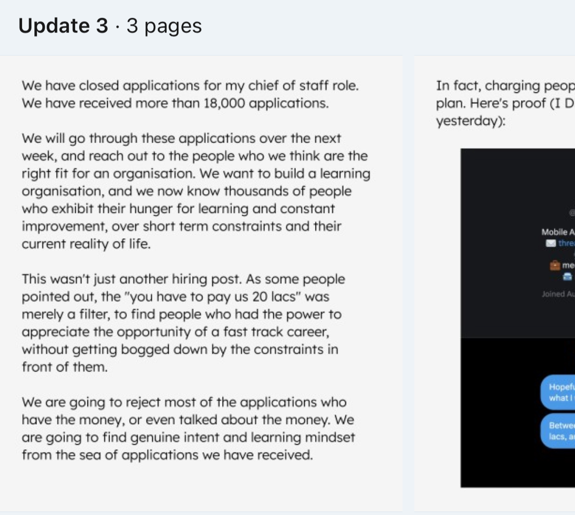 My 2 cents on Deepinder Goyal’s Chief of Staff post. When a founder of a stock market listed Unicorn has to put gimmicks to hire talent, it reflects 2 things. One, the quality of Talent Acquisition team that he has built at his company. Second,