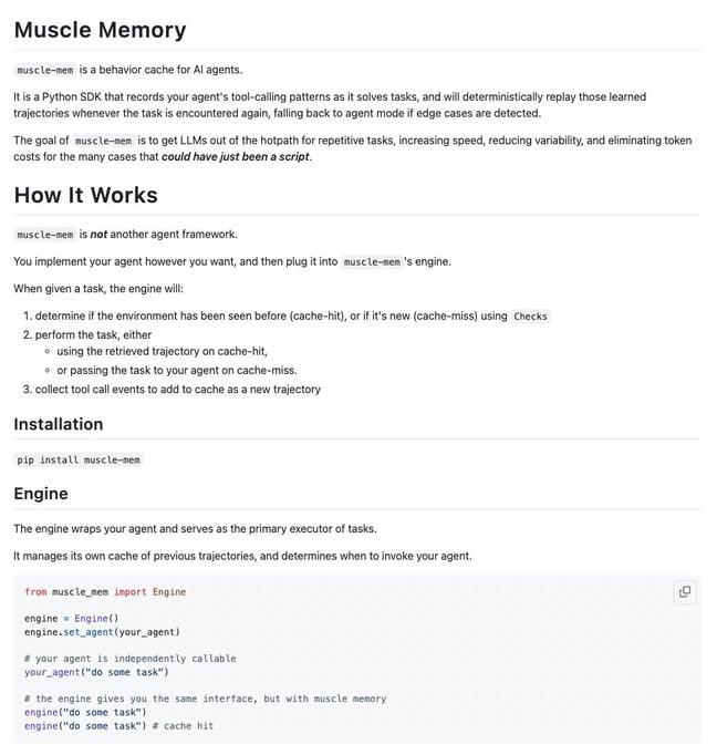 AI Agents now have muscle memory. This Python SDK records agent tool-calling patterns, replays them for repeated tasks, and falls back to agent mode for edge cases. 100% Opensource. Read more here: https://www.theunwindai.com/p/muscle-memory-for-a