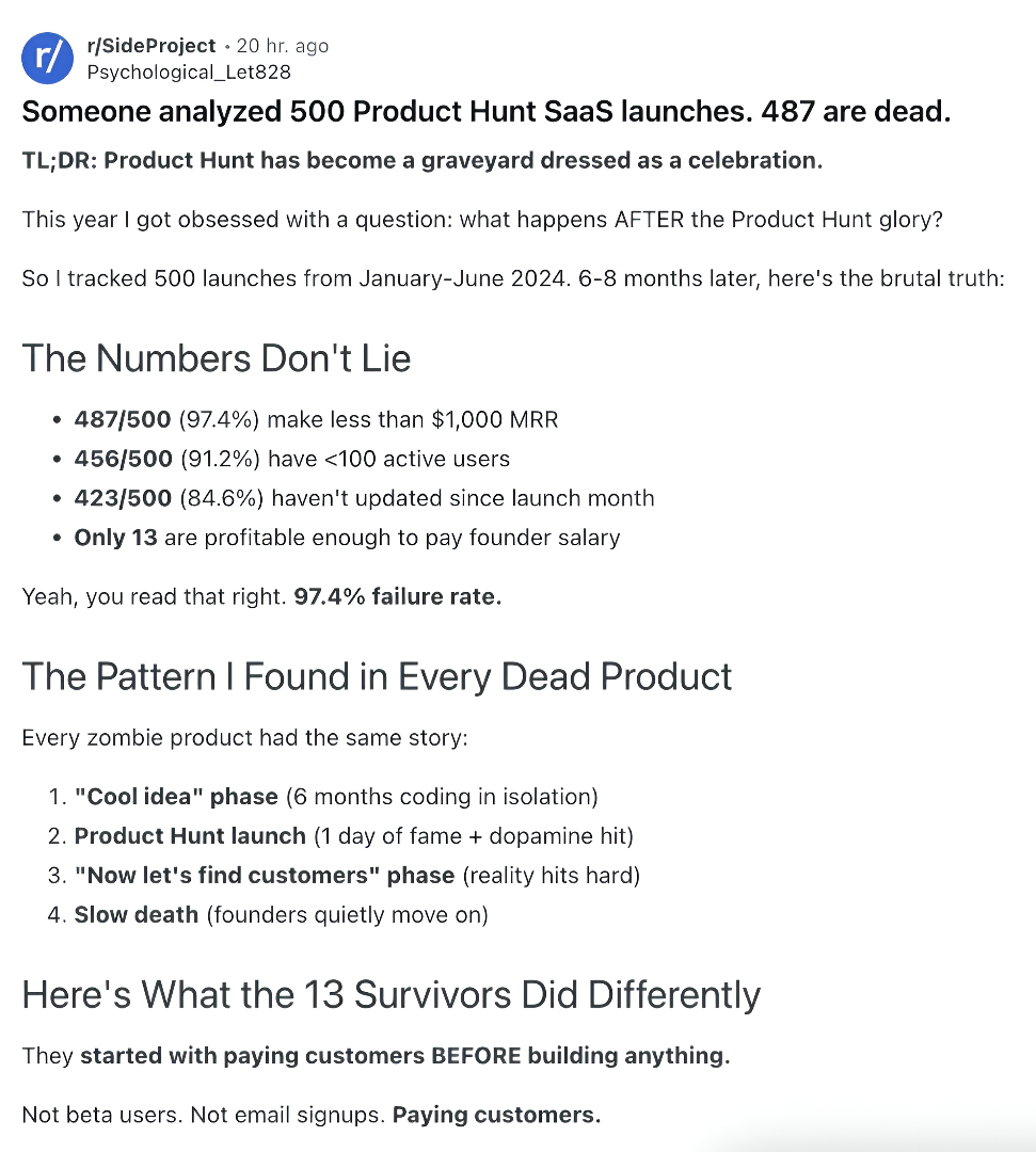 "๐ต๐ณ% ๐ผ๐ณ ๐ฝ๐ฟ๐ผ๐ฑ๐๐ฐ๐๐ ๐ผ๐ป ๐ฃ๐ฟ๐ผ๐ฑ๐๐ฐ๐ ๐๐๐ป๐ ๐ณ๐ฎ๐ถ๐น." People act like thatโs shocking. Itโs not. Itโs how the game works. Making something people actually want is brutally hard. You have to keep building, failing, and trying again un