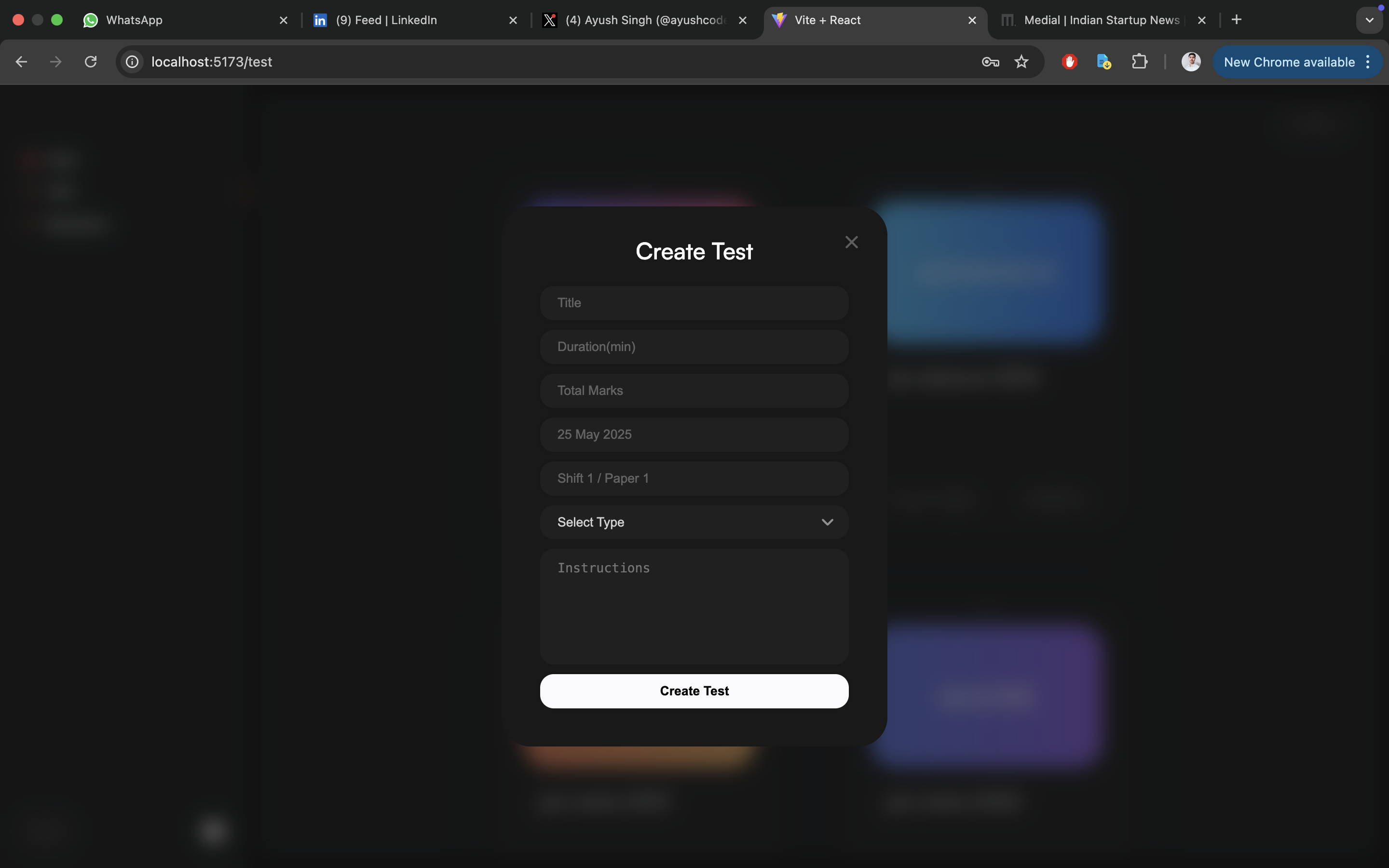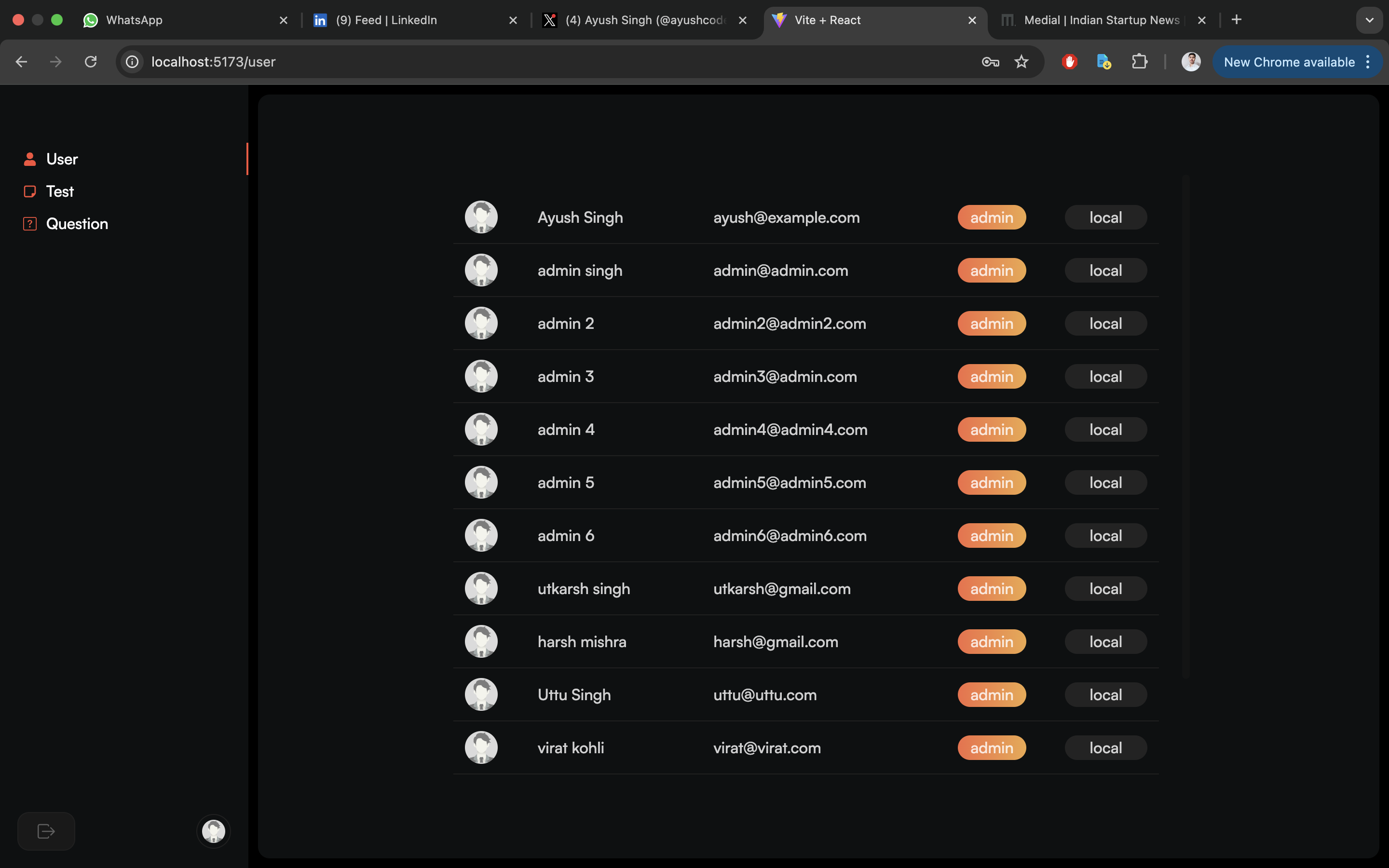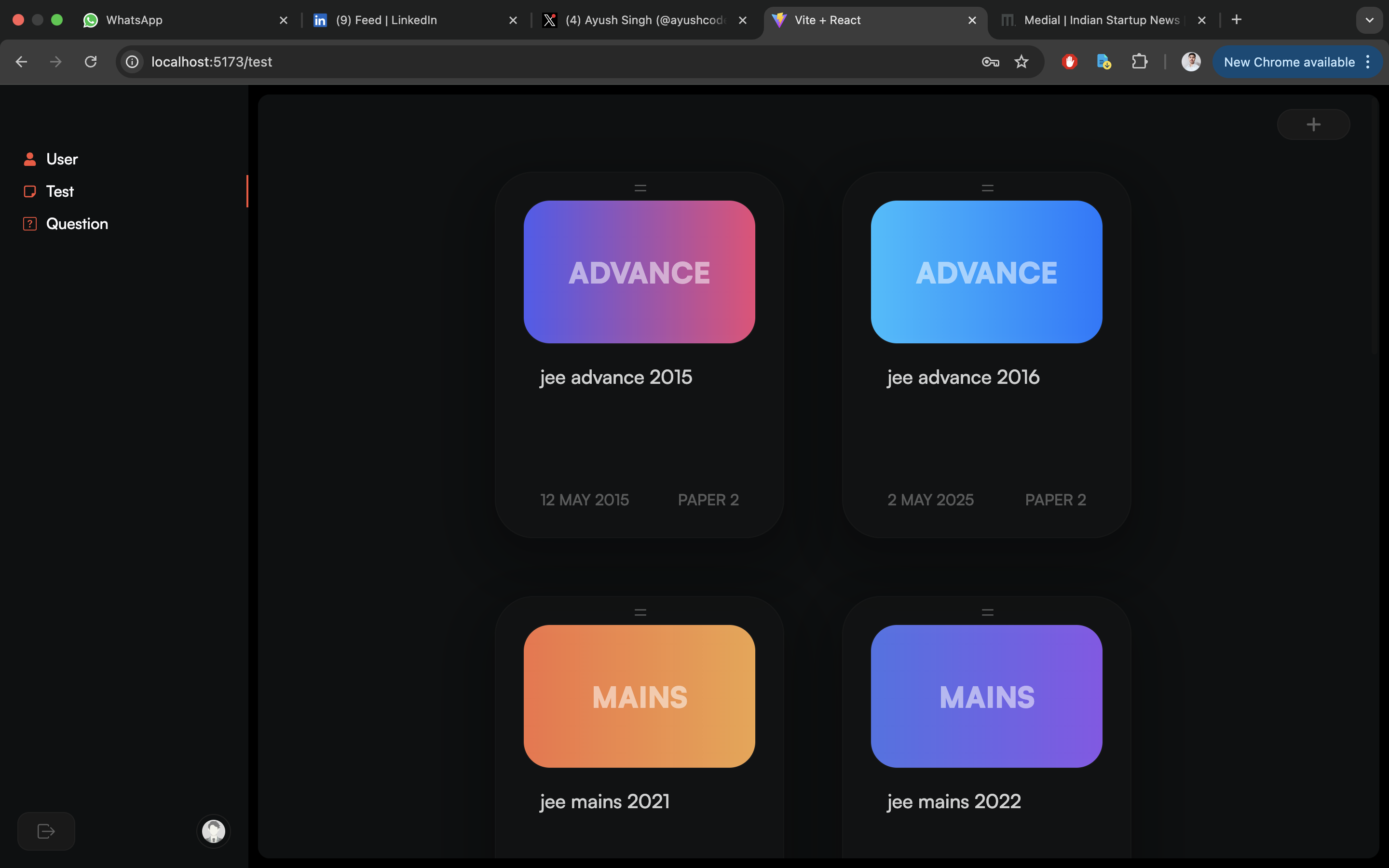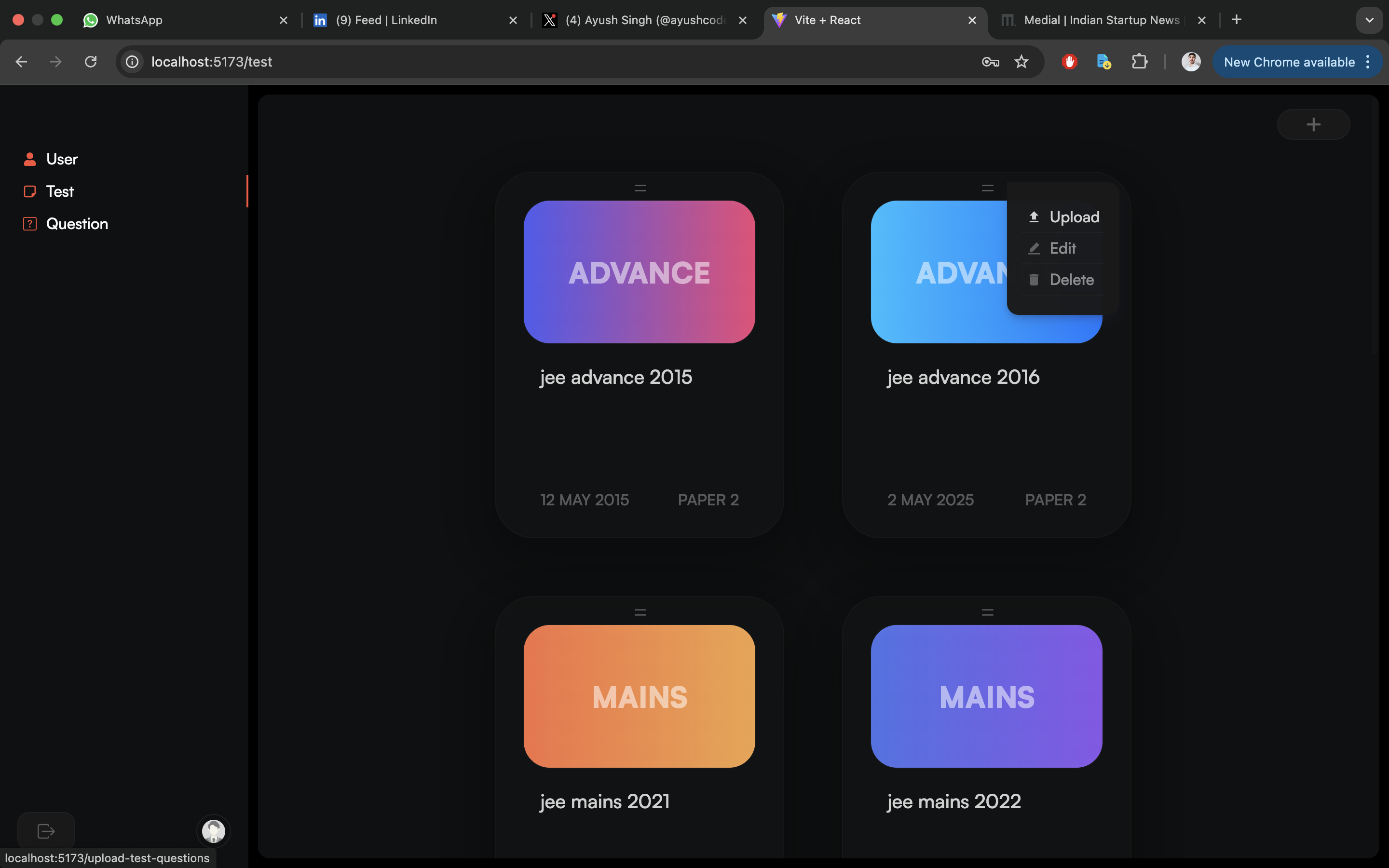 Week 2 Progress on My SaaS Project • Completed the basic Admin Panel UI & functionality • Added features to Create, Update & Delete Tests • Implemented Bulk Upload for Questions • Built All Users & All Tests pages #webdev #webdevelopment #devel