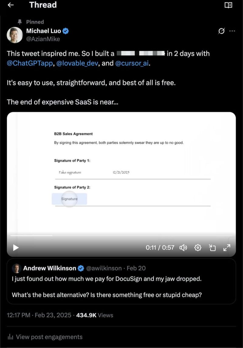 This giant worth US$15 billion (docuSign) sent a legal notice to an alternative built in 2 days with a no-code app (lovable) 😂😂🤦🏾♂️ found on x