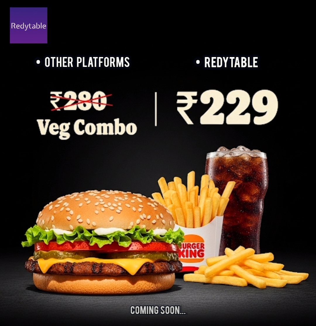 Salary gone? Mood gone? Foodโs still on. ๐ Same Burger Combo โ โน229 on RedyTable, โน280 elsewhere. โข โ No hidden platform charges โข ๐ดโโ๏ธ Delivered in 15 minutes โข โค๏ธ Zero delivery fee. Zero heartbreak. Because at RedyTable, food doesn't cost yo