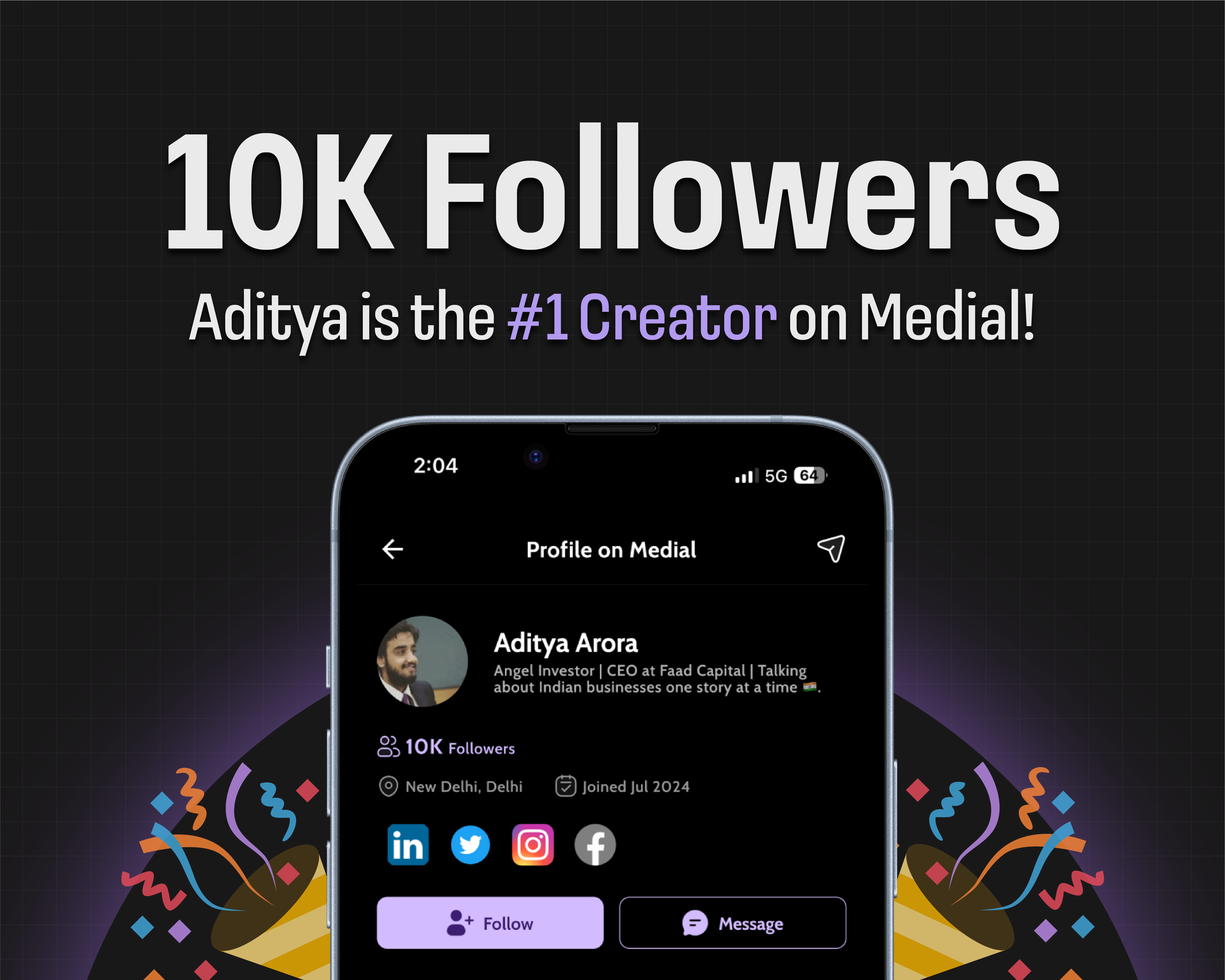 Medial got it’s first creator with 10k followers- Aditya Arora Aditya’s content resonates the most with our users and is super knowledgeable. I congratulate him on this mark and hope many more creators grow bigger with us. 🙏🙌🏻