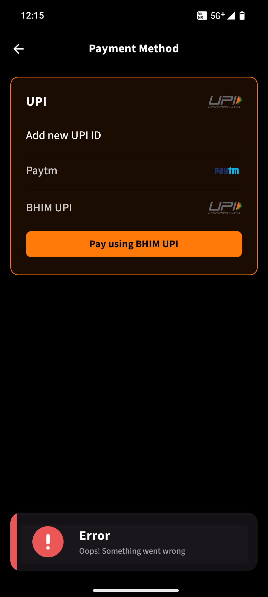 there's an issue when I'm trying to upgrade my premium