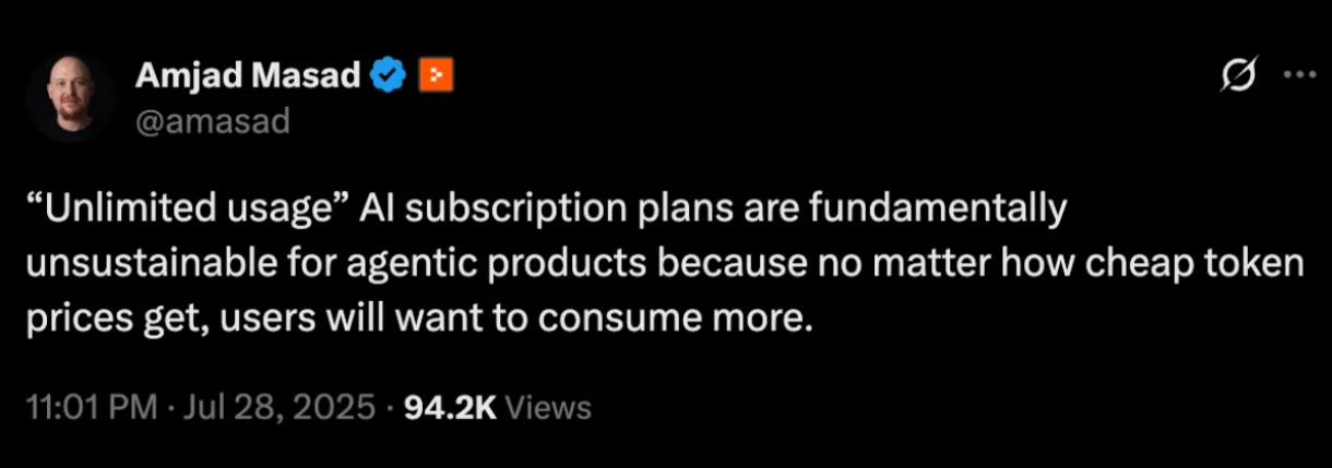 ๐๐ ๐๐๐ฎ๐ฟ๐๐๐ฝ๐ ๐ฐ๐ฎ๐ปโ๐ ๐๐๐ฟ๐๐ถ๐๐ฒ ๐ผ๐ป ๐๐ต๐ฒ ๐ผ๐น๐ฑ ๐ฆ๐ฎ๐ฎ๐ฆ ๐ฝ๐ฟ๐ถ๐ฐ๐ถ๐ป๐ด ๐บ๐ผ๐ฑ๐ฒ๐น. Why? Because AI costs arenโt fixed. Things like: GPU time API calls Token processing Video rendering ...all get more expensive as users do more. So if you charge a flat monthly fee, one power user can eat up your profits. Thatโs why smart AI startups now use: ๐๐๐ซ-๐ฎ๐ฌ๐๐ซ + ๐๐ฌ๐๐ ๐-๐๐๐ฌ๐๐ ๐ฉ๐ซ๐ข๐๐ข๐ง๐ Basically: Charge something to get in the door (per user) Then charge more based on actual usage ๐๐ ๐ฎ๐บ๐ฝ๐น๐ฒ๐: OpenAI โ per 1,000 tokens ElevenLabs โ per character Runway ML โ per video minute + resolution Replicate โ based on GPU time Midjourney, Grok, Anthropic โ credits or time โข Feels fair to users โ they pay for what they actually use โข Founders donโt lose money on heavy users โข Revenue scales naturally with demand Bottom line? ๐๐ ๐ถ๐๐ปโ๐ ๐ฆ๐ฎ๐ฎ๐ฆ. ๐๐ผ๐ปโ๐ ๐๐ฟ๐ฒ๐ฎ๐ ๐ถ๐ ๐น๐ถ๐ธ๐ฒ ๐ฆ๐ฎ๐ฎ๐ฆ. It needs its own smart business model.
