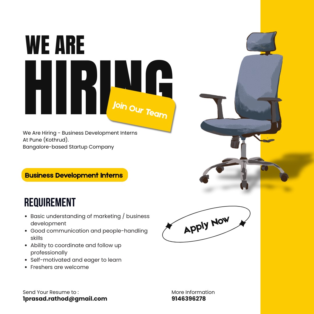 We are looking for motivated and growth-oriented Business Development Interns to join our team and support our IT Service + Product-based company. ๐น Role & Responsibilities Identify potential clients and business opportunities Conduct basic marke