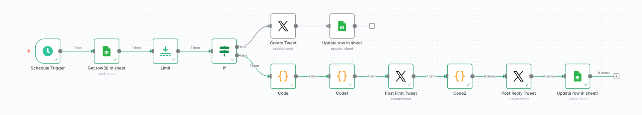 ๐ Finally cracked it: Erica now posts on X (Twitter) seamlessly. โ Single tweets? Done. โ Full threads? Automated. What makes Erica unique is that (as far as I know) itโs the only n8n automation capable of processing both tweet formats directly fr